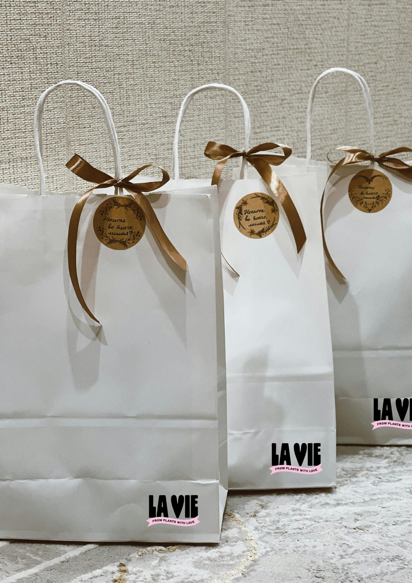 Nous vous proposons des sacs en papier pour la remise de vos colis. Ils existent en différentes tailles et s’adaptent à vos cadeaux.