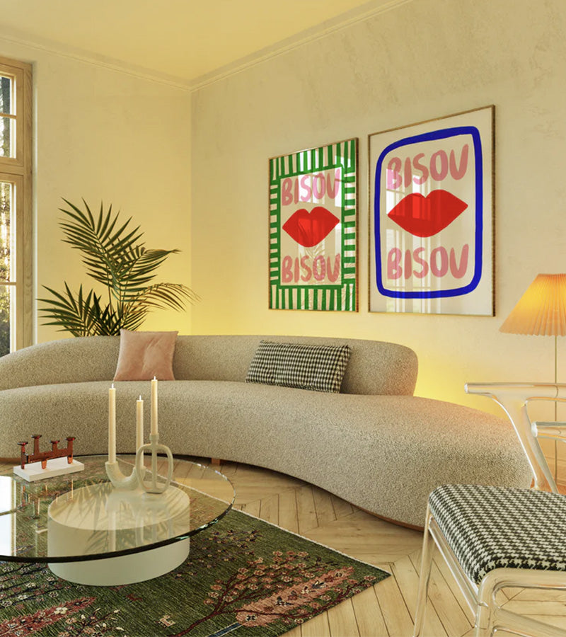 Affiche A3 Bisou Bisou / Bleu - Nephtys Illustrated