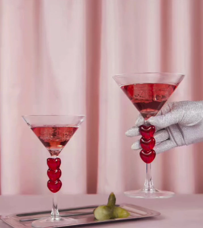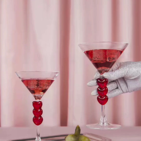 Deux verres à cocktail shapés love : des cocktails parfaits pour shaker les cœurs. 🍸❤️