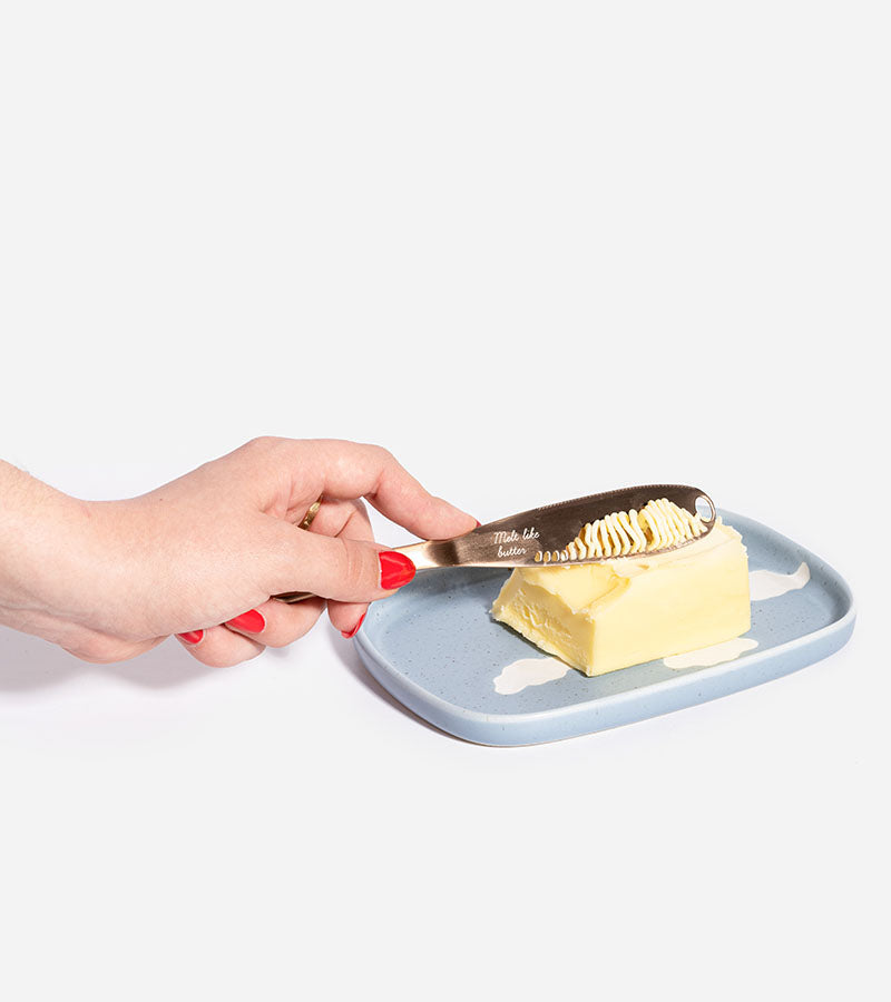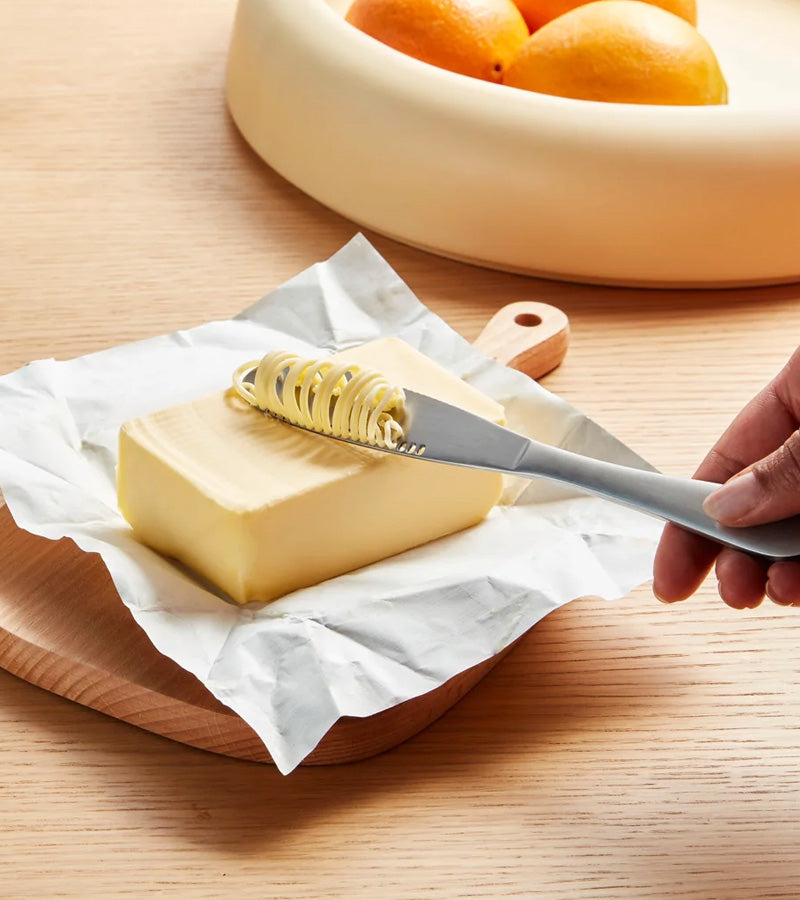 Cet incroyable couteau magique fait une véritable métamorphose : il change le beurre froid et dur en rubans doux et somptueux qui garniront gracieusement sur vos toasts sans les abîmer !