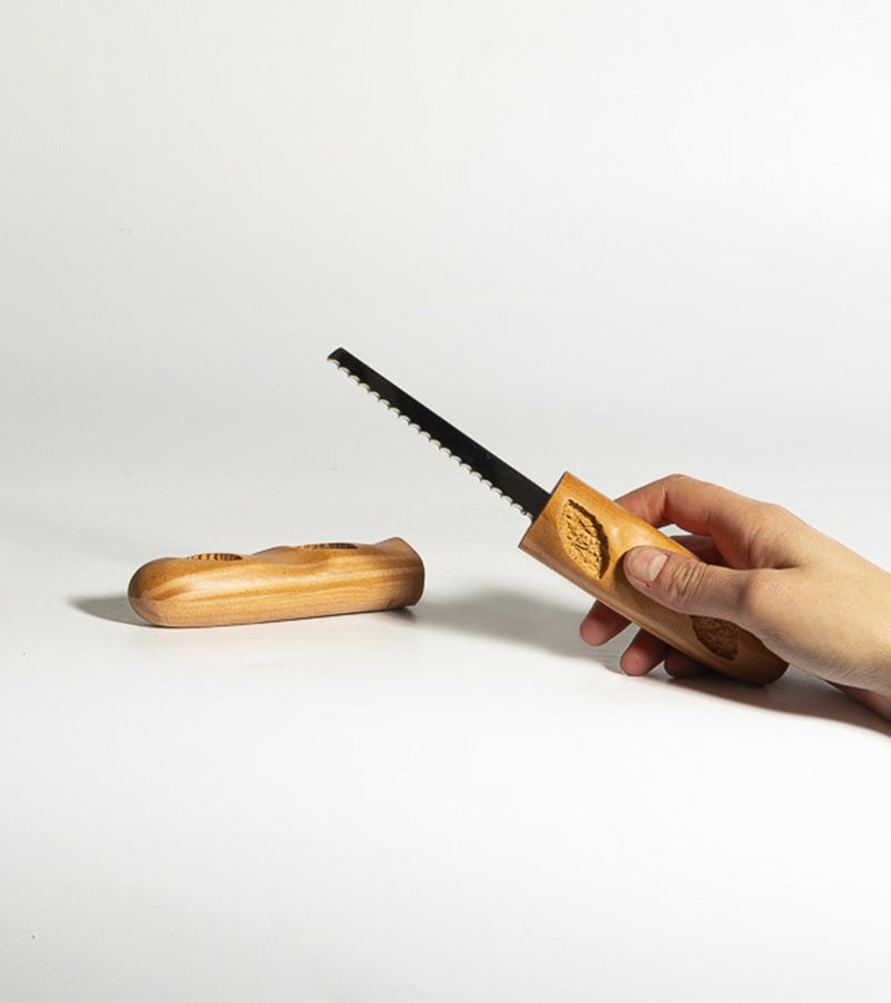 - Un couteau à pain en forme de pain