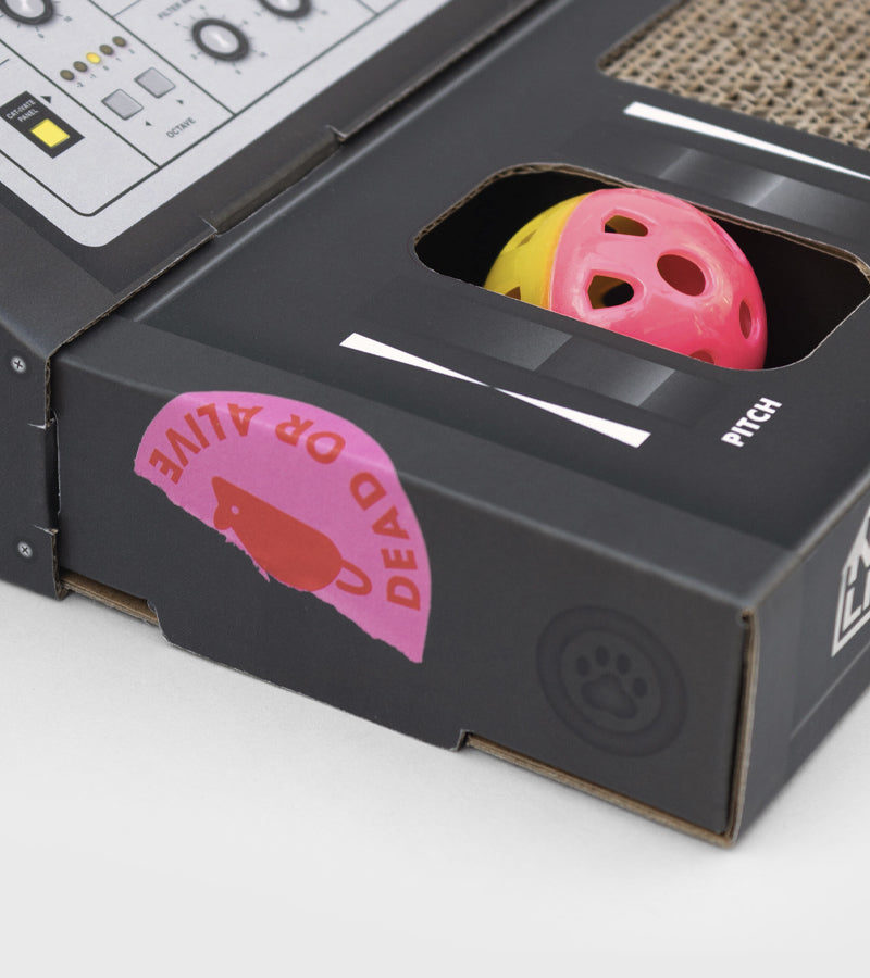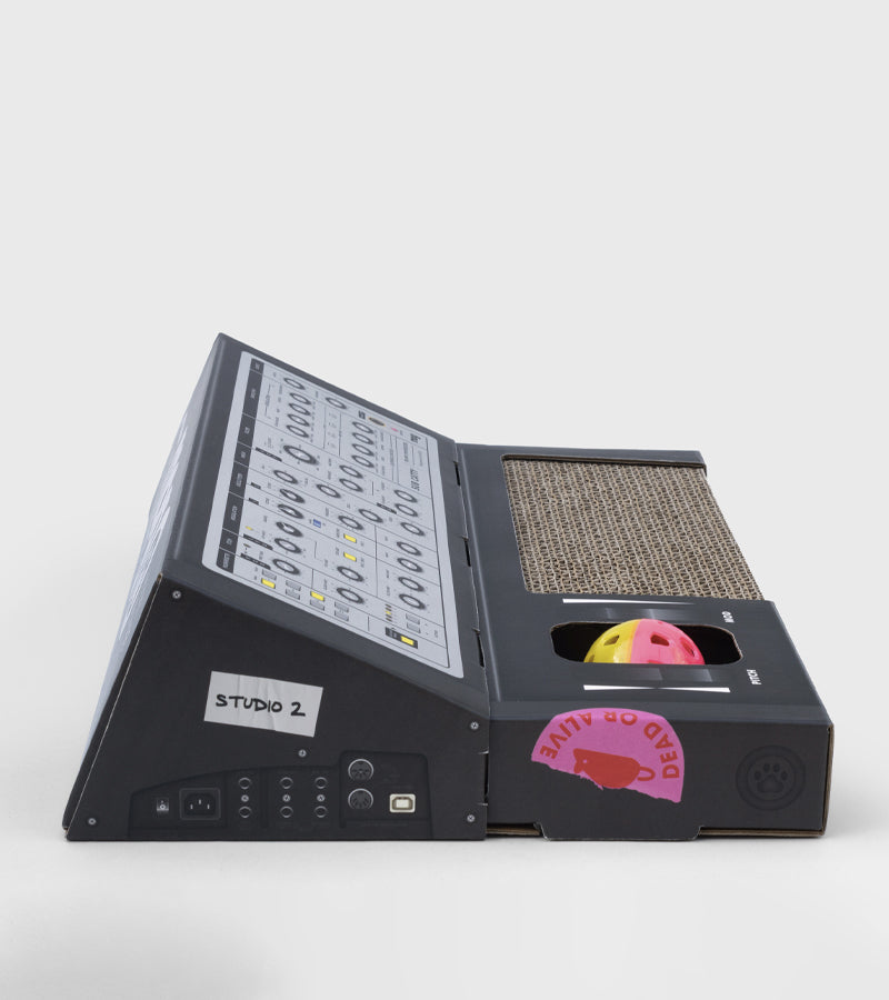 Laissez votre chat mixer ses meilleures griffades avec ce griffoir synthétiseur ! Il va enfin pouvoir scratcher autre chose que votre canapé et devenir le DJ star du salon ! 🎶😹