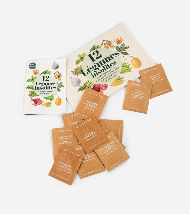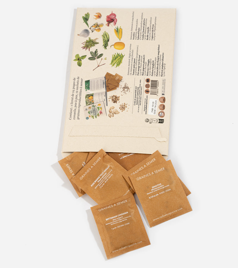 - Coffret contenant 12 sachets de graines format 62 x 80mm
