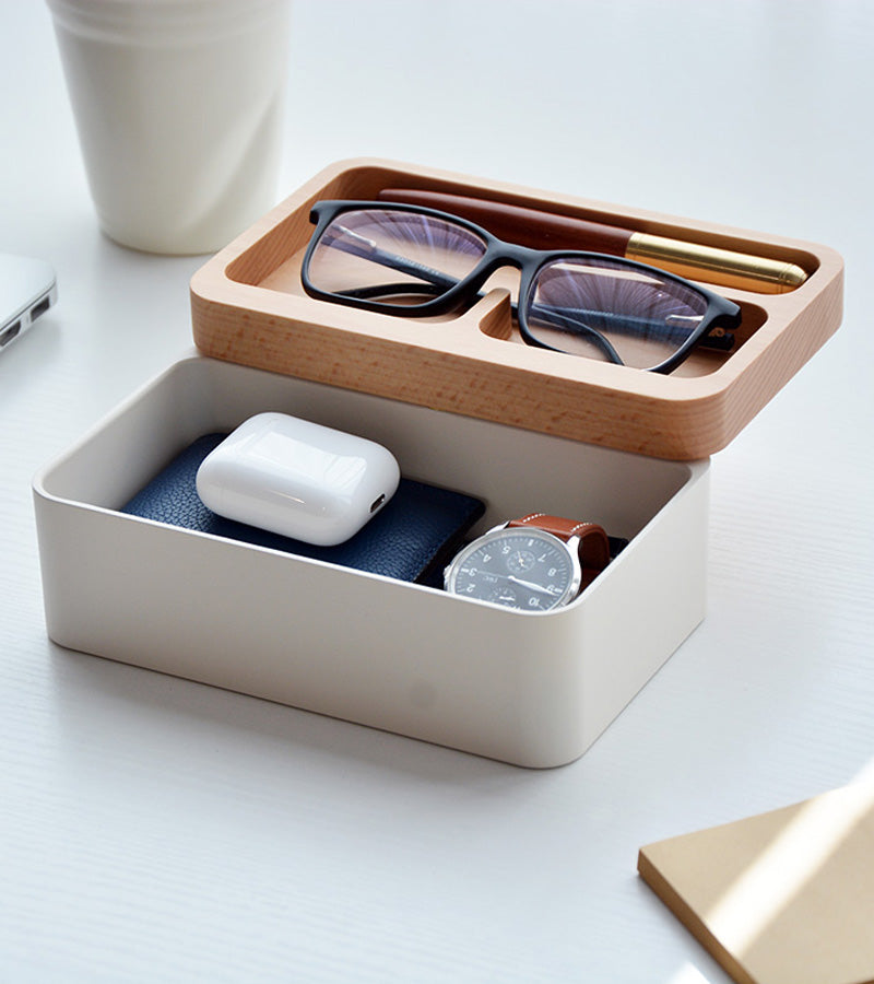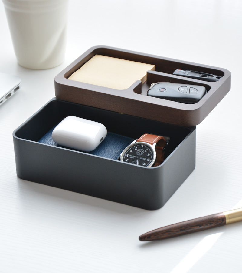 Un vide-poche malin pour devenir un as du rangement. Minimaliste, il se fond dans tous les décors avec élégance et modernité. Aimanté, il vous suffit de faire glisser le compartiment supérieur pour plus de rangement.