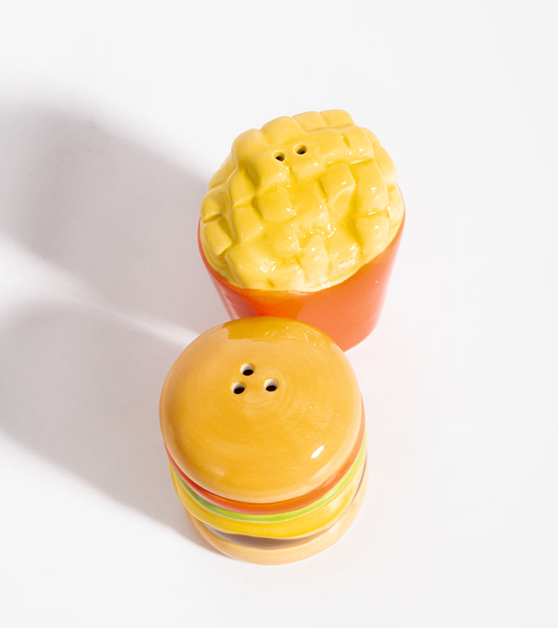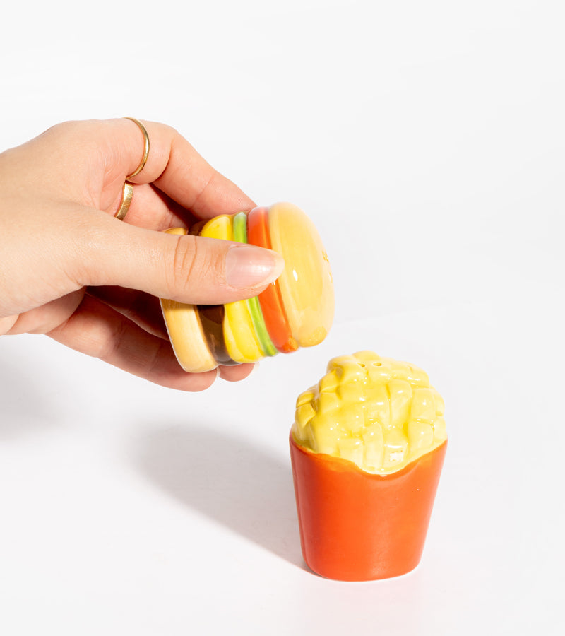 Apportez un goût unique à votre table avec ces salières et poivrière Fast Food. en forme de hamburger et de frites ! 🍔🍟