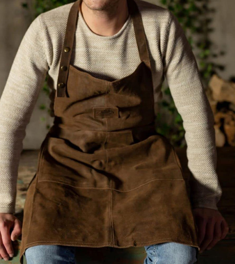 Avec ce tablier en cuir, impose ton style de maître du barbecue 🔥 ! Robuste, élégant et ultra-pratique avec ses multiples poches, il te protège des éclaboussures et des étincelles. Enfile-le et montre à tous qui règne sur le gril 🍖👑.